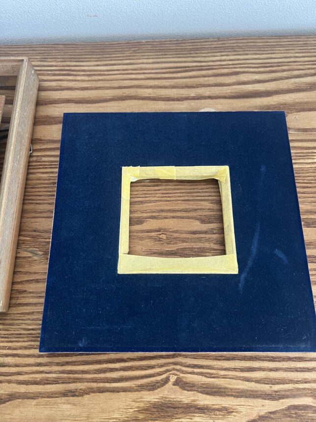 額縁から取り外し、マスキングをし、黒のアクリル絵の具でお色直し。