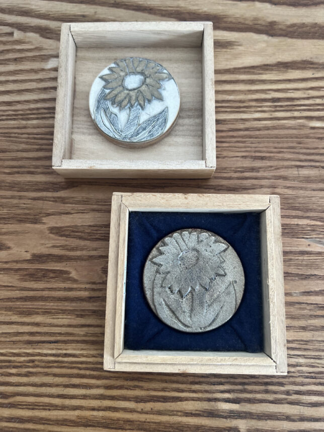 独立したお姉ちゃんの部屋を、少しずつ整理しています。そんな中で見つけたのが、小学校の卒業記念で作った銅鏡。