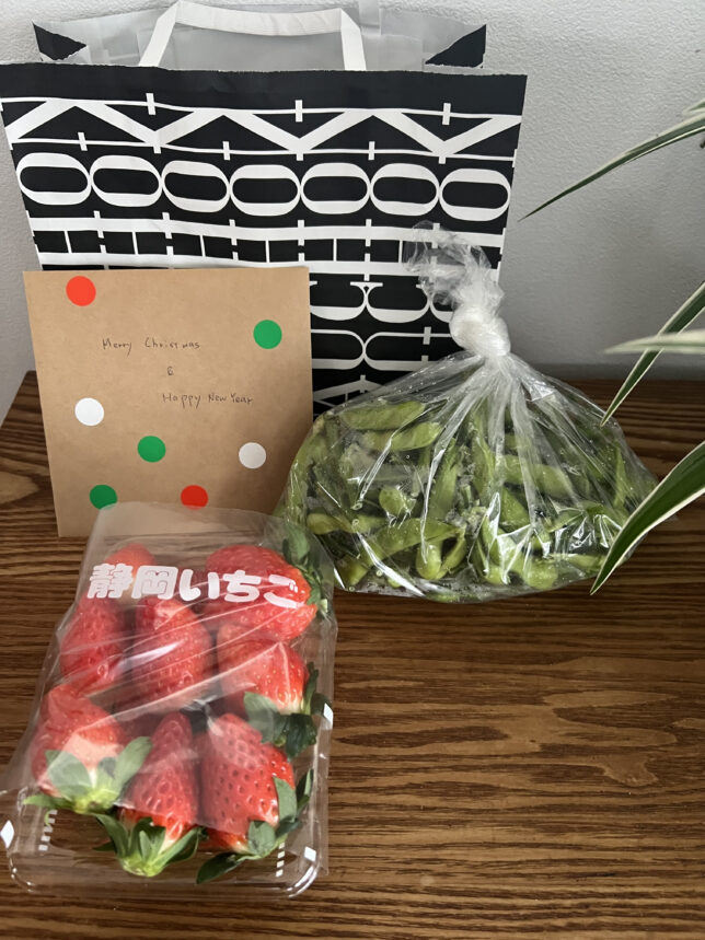 。貴重な苺と枝豆に加えて、その振る舞いや言葉、有難いお付き合いも丸ごとサンタさんからプレゼントをもらったように感じるのでした。