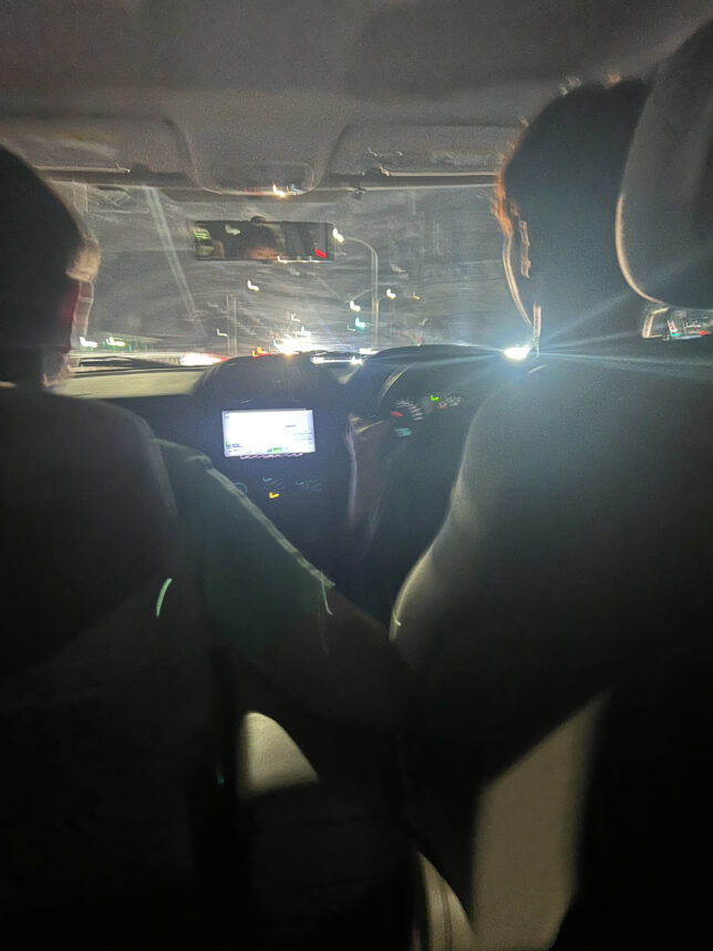ドライブ 2025年10月1日 / NINO 運転手はちょ太、乗員はサトコと旦那さん、家族3人で夜のドライブ。免許とりたて、夜の運転初体験の運転手さんはちょっぴり緊張していたけれど、安定したドライビング。後部座席から、その姿を頼もしく見つめた母でした。大きくなったなあ。