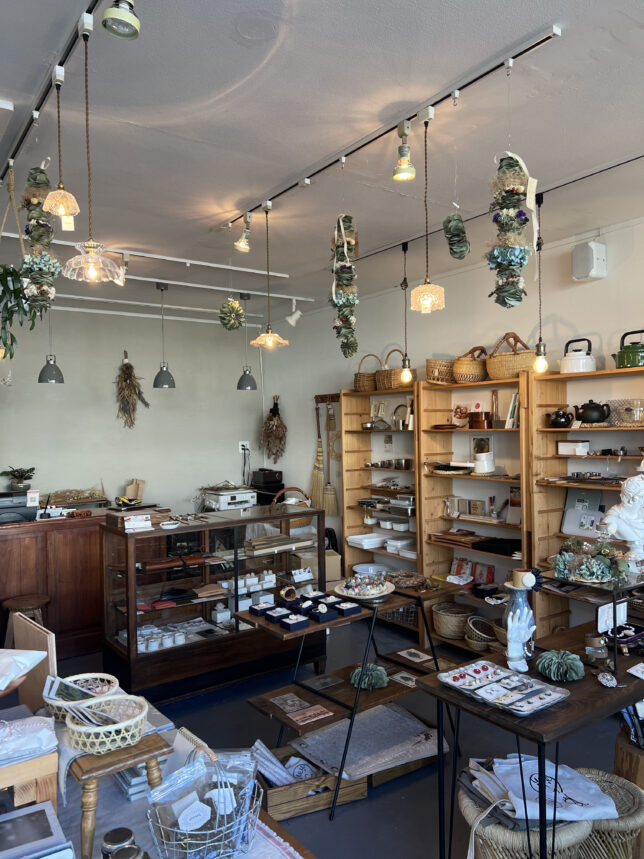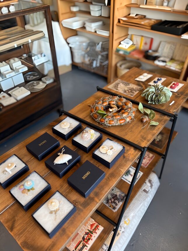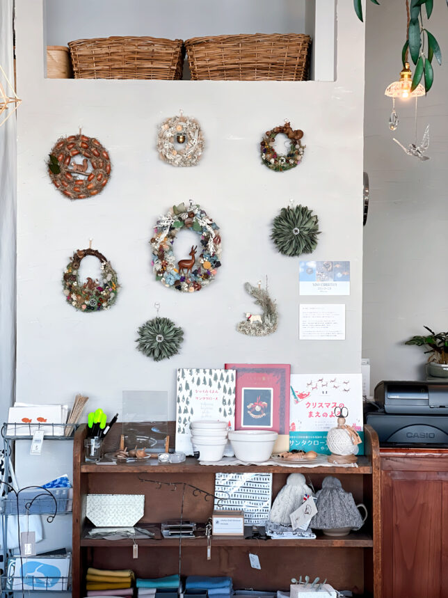 Fossetさんでは、静岡にお店があった頃から長く年末の恒例としてリースを展示させていただいていますが、昨年からはランプシェードやアクセサリーも加わり、作品をトータルでご覧いただけること、またリース以外の作品にも関心を寄せてくださるお客様が多いことを、とても嬉しく感じました。