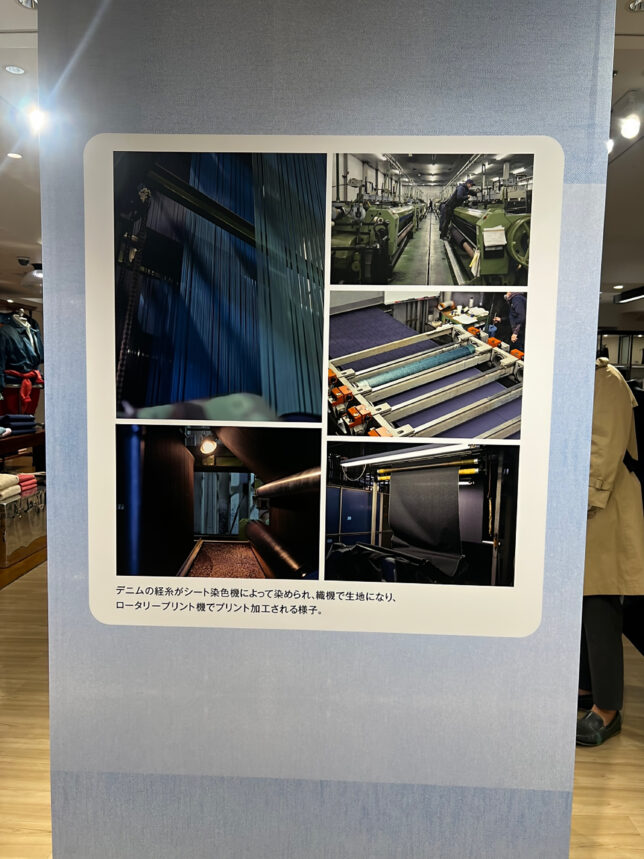 先日伺った際には、担当の方が時間をとってくださり、ショーウィンドウをご案内いただいたり、デニムの生産者の方をご紹介いただいたりと、ものづくりの背景にある工程や技術について、直接お話を伺う機会をいただきました。