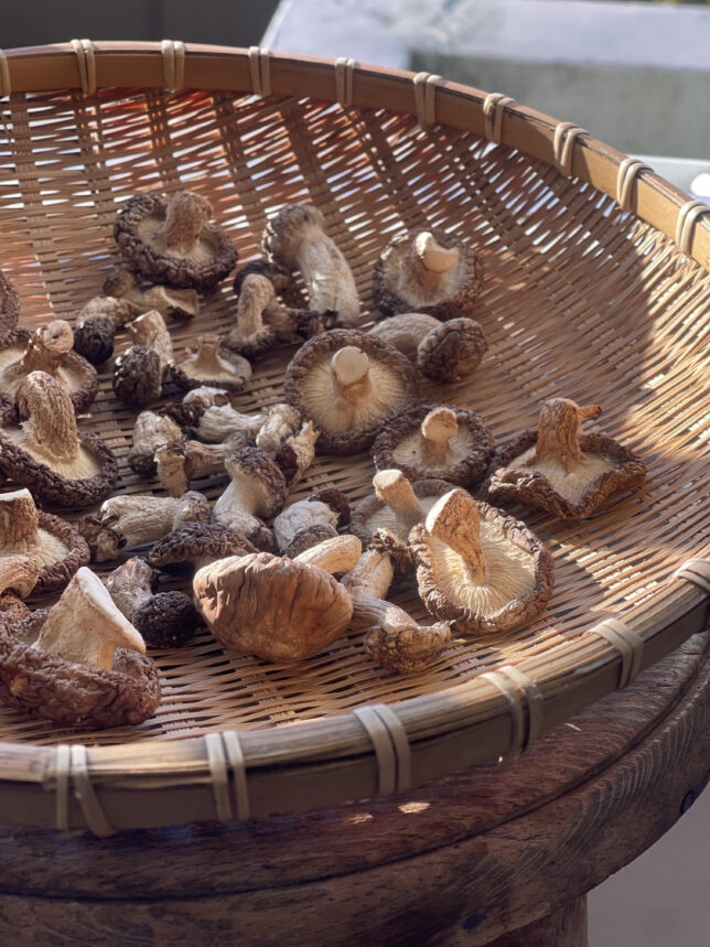 いつもの直売所でお得に入手(この量で220円也)した椎茸をベランダで干し椎茸に。