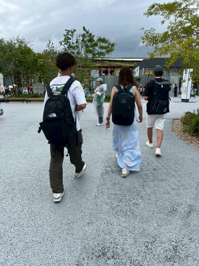 ↑今年9月に家族で大阪万博に行った際の旦那さんと子どもたち、3人の後ろ姿